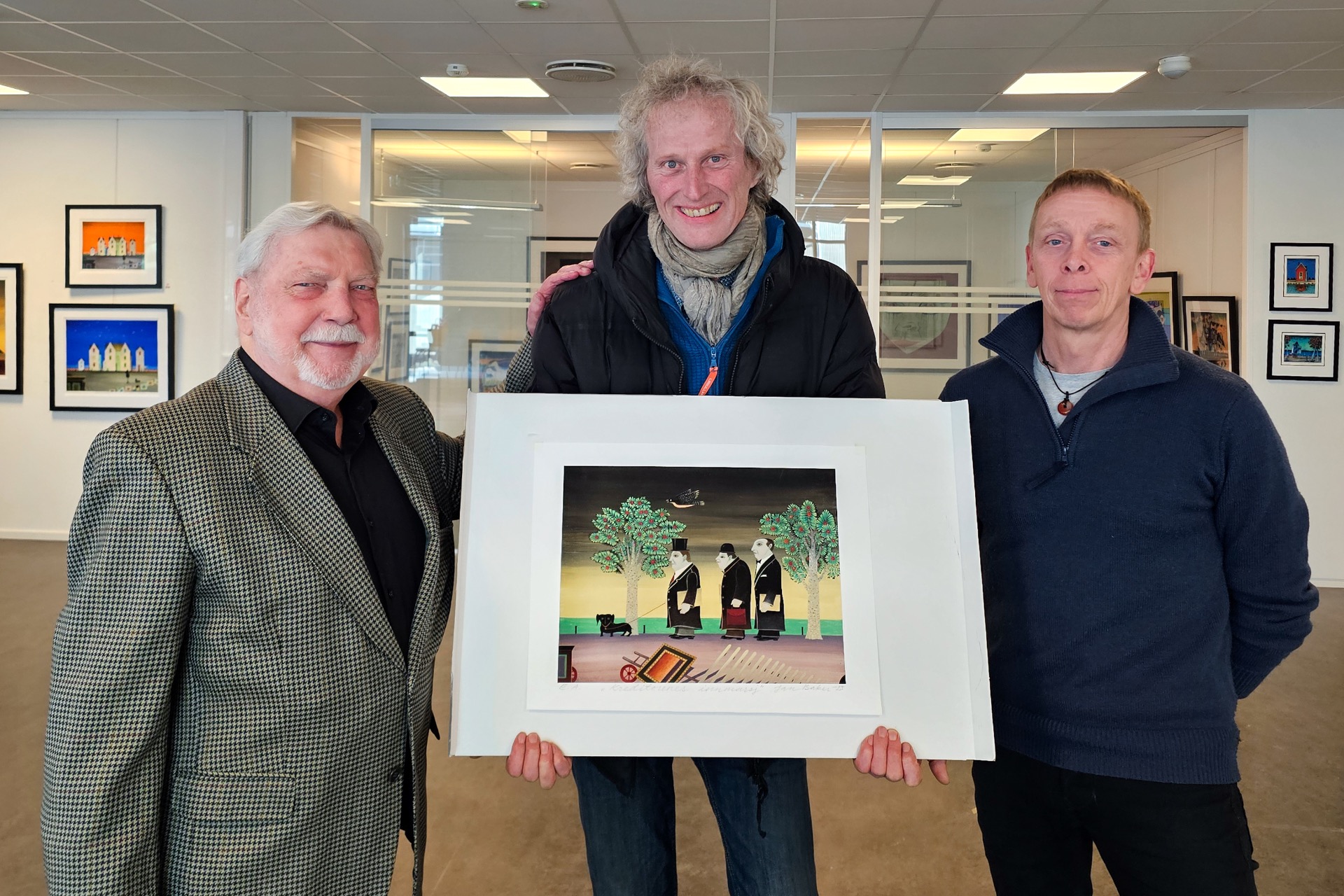 Anders Often er den heldige vinner av kunstlotteriet. Often vant bildet «Kreditorenes innmarsj» av Jan Baker (verdi kr 9 800).