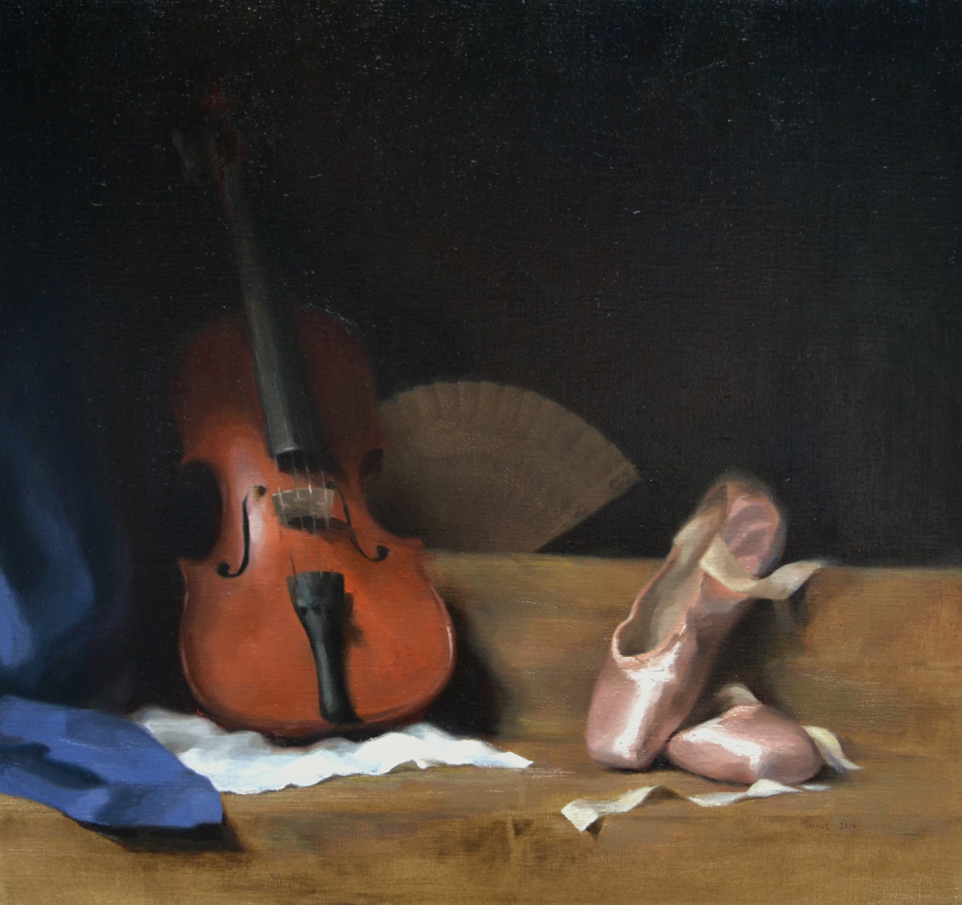 - Maling(rå umbra, sort, ultramarine blå, hvit, oker gul, cadmium gul, alizarin crimson og cadmium rød light)
