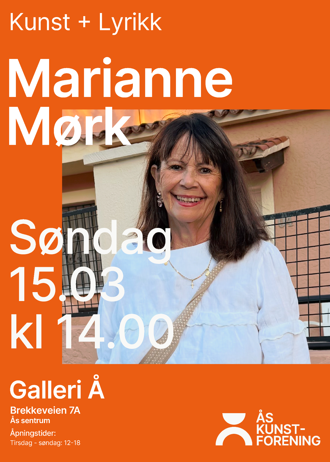 Søndag 15. mars inviterer Ås kunstforening til en litterær ettermiddag når skuespiller, forfatter og regissør Marianne Mørk kommer til det nye Galleri Å.